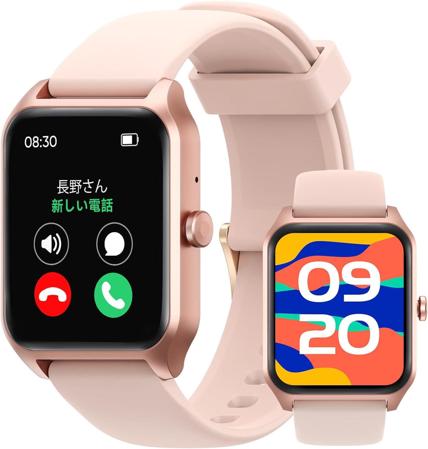 【Tensky 2023年発売 スマートウォッチ,】通話機能付き 1.8インチ大画面 アンドロイド iPhone対応 100多種類運動モード 7日長持ちバッテリー ストップウォッチLine/Facebook/Twitterなどの着信通知 計算機 目覚まし時計 活動量計 歩数計 パスワードを设置でき 腕時計 生活防水可能 誕生日/敬老の日/子供の日 日本語説明書付き 12ヵ月品質保証(ピンク)