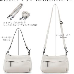 2本のショルダーベルト付属: 2本のショルダーストラップを提供しており、長い方のベルトは60〜120cmの範囲で調整可能で、ショルダーバッグや斜めかけバッグとして使用できます。短い方のベルトは約50cmで調整不可ですが、ミニトートや肩掛けや手提げとして活用できます。多彩なスタイリングで、さまざまな場面で活躍することでしょう。