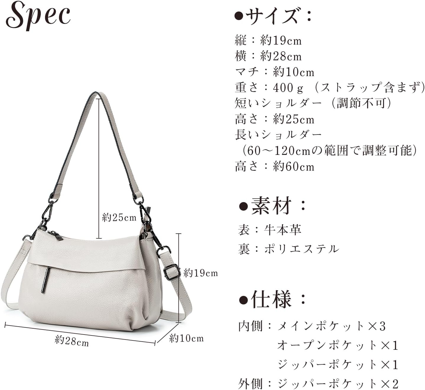 上質な素材: このショルダーバッグは最高級の牛本革を使用し、その柔軟性、耐久性、高級感に自信を持っています。毎日の使用に耐えうる品質です。 高品質な金属ジッパーを採用し、スムーズな開閉、錆びにくさを実現し、洗練されたクオリティを提供します。シンプルかつカジュアルな外観、持ち運びが簡単なハンドバッグデザインで、日常生活、通勤、旅行など、多岐にわたるシーンで活躍しています。