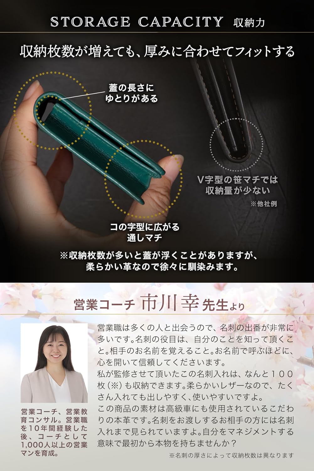 - 【特徴】「営業職に贈る大容量名刺入れ」は、これまでに1000人以上の営業職を育成してこられた、営業コーチの市川先生に監修して頂きました。化粧箱付属でギフトラッピングにも対応しているので、ギフトに最適!